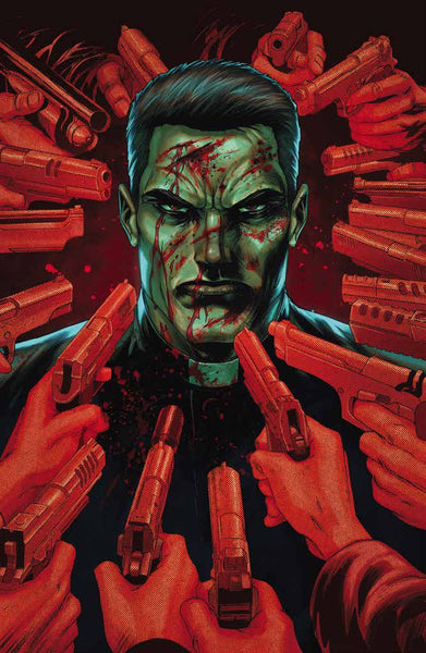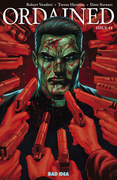 New York Times best-selling author Robert Venditti (SUPERMAN ‘78, PLANET DEATH) joins forces with powerhouse artist Trevor Hairsine (DCEASED, X-MEN) and ten-time Eisner Award-winning colorist Dave Stewart (HELLBOY, STAR WARS) to deliver a brutal, no-holds-barred action crime comic that will leave you breathless. Father Royston Craig became a priest late in life but he's determined to make up for lost time. Along with his regular duties at his St. Louis church, he also performs the prayers of the last rites to patients on their deathbeds at the nearby hospital.One day, he's called to give these sacraments to Cormac Byrne, who doctors say won't last the night. Byrne, like many others, has turned to God only at the end; he hasn’t been to church in decades. Father Roy is eager to hear his confession, but what starts as petty crime from a lifetime ago quickly becomes a horrifying litany of gangland violence and killings. Cormac Byrne is no ordinary man. He is, in fact, the head of the Irish mafia. God offers forgiveness to all who truly repent, and Father Roy completes his task by absolving Byrne of his mortal sins, leaving the man to die at peace…...until the next morning. When Byrne makes a miraculous medical recovery. No longer at death’s door, Byrne is quick to return to his old ways. It’s business as usual and he’s got loose ends to tie up. First things first: KILL THE PRIEST who now knows where all the bodies are buried.But Father Roy’s collar wasn’t always white, and Byrne is going to learn the hard way that Father Royston Craig was once Chief Petty Officer Royston Craig, a former Navy SEAL who found his faith in the midst of battle. Now Father Roy must face vicious gangsters, corrupt cops, and his own inner demons if he is to survive. And while he will be forced to tap into a violent skill set he thought never to again entertain, the one thing Father Roy will not do… is kill.